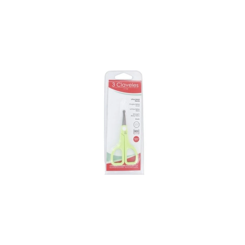 3 Claveles Ciseaux à Ongles Bébé Droit 9 cm est un accessoire de manucure à bout rond pour bébés.