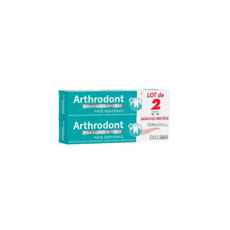 Arthrodont Dentifrice Fraicheur Intense Lot de 2 x 75 ml est un dentifrice qui rend les gencives plus fortes en apportant une sensation de fraîcheur intense et durable à chaque brossage.