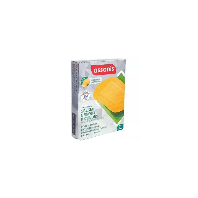 Assanis Pansements Genou et Coude sont des pansements qui répondent aux besoins des plaies superficielles. Leur texture leurs permet d’être très extensibles, ils sont hypoallergéniques, ils offrent une forte adhérence et se retirent sans douleur. Leurs formes sont adaptées aux articulations et vous permettent de bouger librement.