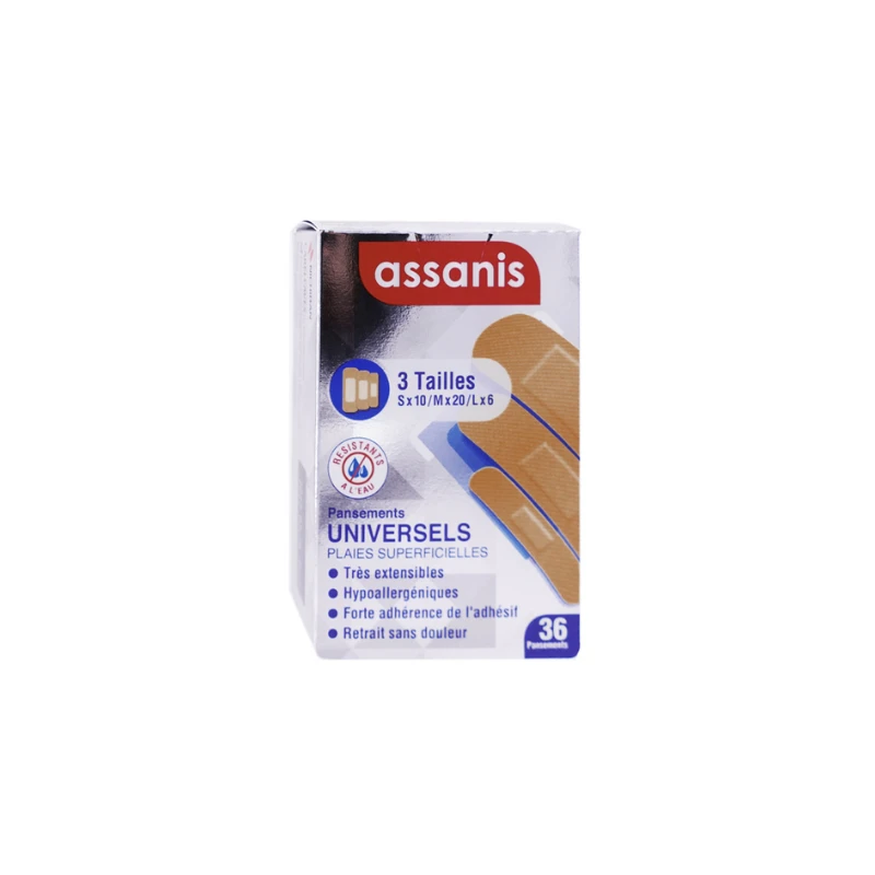 La boîte contient 36 pansements en 3 tailles et de couleur chair.