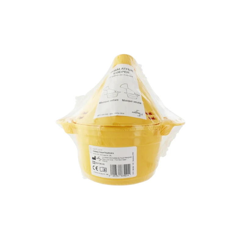 L’ Inhalateur polyéthylène de Cooper permet de faire facilement des inhalations sans risque de brûlures, en cas d’affections ORL (Oto-rhino-laryngologie : oreille, nez, larynx).