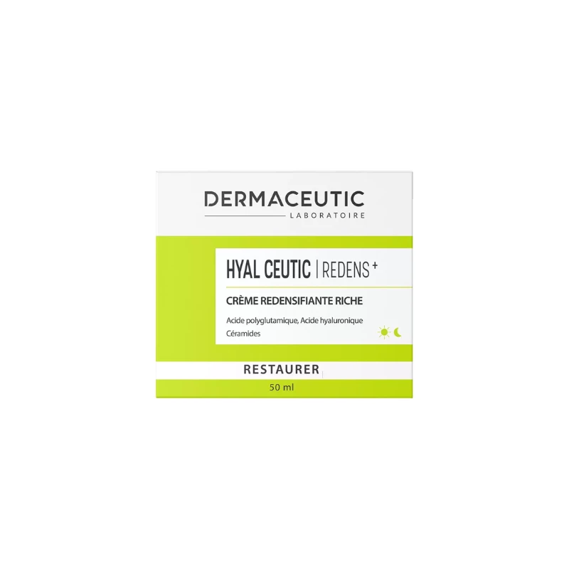 Au fil du temps, la peau perd en densité, en élasticité et en hydratation. Ces changements physiologiques sont responsables de rides marquées, d’un relâchement cutané et de l’inconfort lié à la sécheresse. Dermaceutic Hyal Ceutic Redens+ est une crème redensifiante riche , spécialement formulée pour répondre aux besoins des peaux très matures qui manquent de fermeté et d’élasticité.