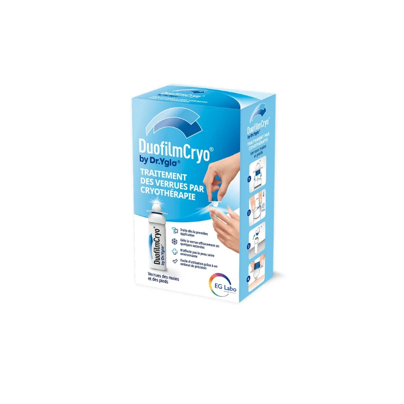 DuofilmCryo est recommandé pour le traitement par cryothérapie des verrues des mains et des pieds.