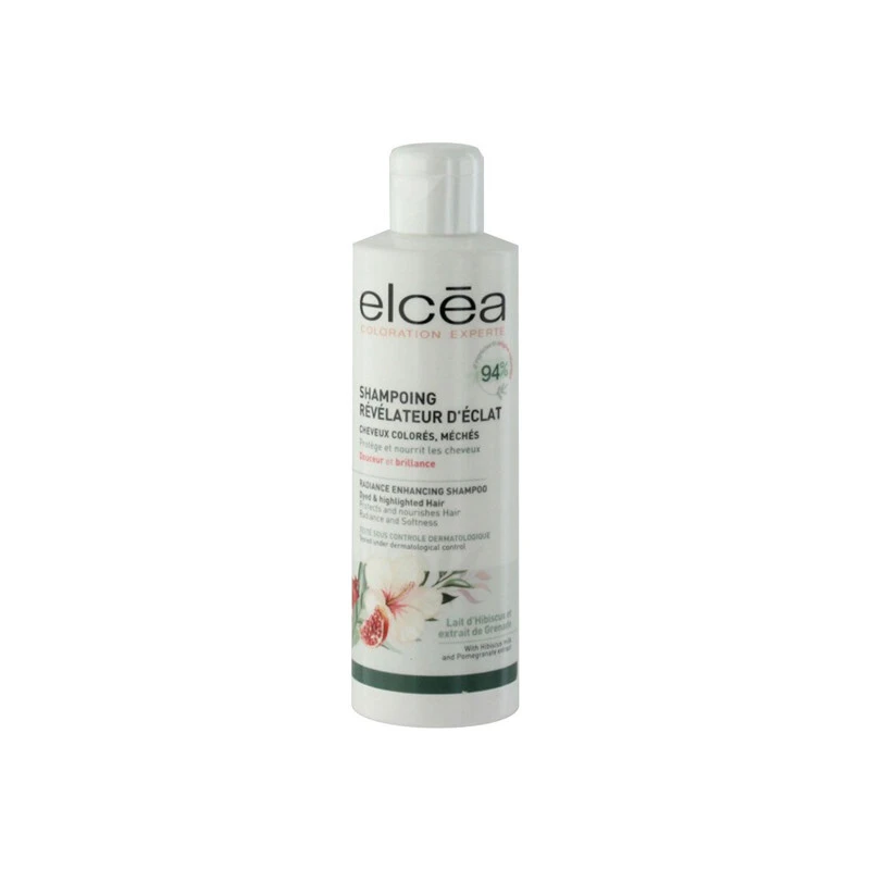 ELCEA Shampoing Révélateur d’Eclat préserve l’intensité de la couleur et prolonge sa tenue. Enrichi en lait d’Hibiscus, en phytocéramides nourrissants et en extrait de Grenade anti-oxydant, il protège et nourrit les cheveux fragilisés par les colorations et/ou les mèches; il sublime la couleur et ses reflets. sa formule ultra-douce respecte le cuir chevelu et la fibre capillaire.