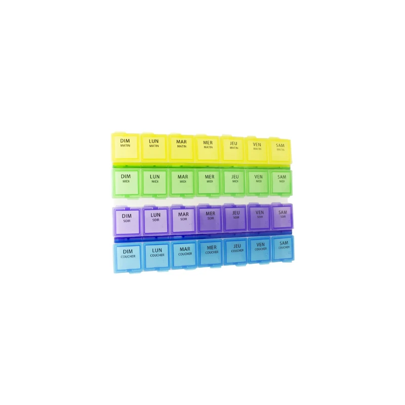 Doté de 28 compartiments : les 7 jours de la semaine, matin, midi, soir coucher.