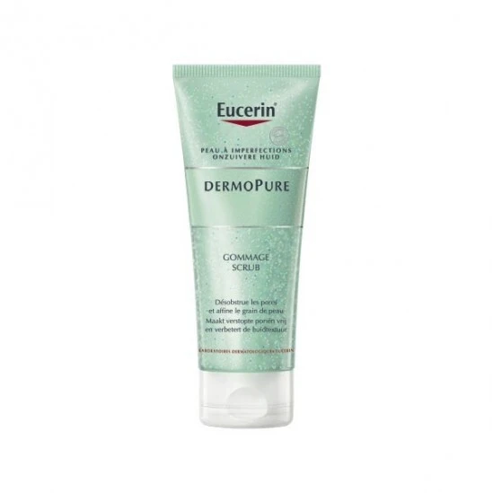 Grâce à sa formule enrichie en Acide Lactique et qui renferme des micro-particules, EUCERIN DermoPure Gommage désobstrue les pores, contribue à combattre les points noirs et les imperfections et affine le grain de peau.