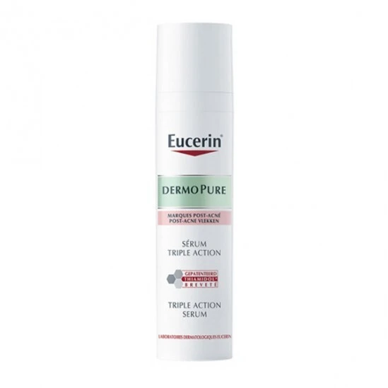 Le Sérum Triple Action DermoPure est cliniquement testé. Sa formule à base de Thiamidol breveté* réduit les marques post-acné, les imperfections et contrôle la brillance. Premiers résultats visibles dès 2 semaines.