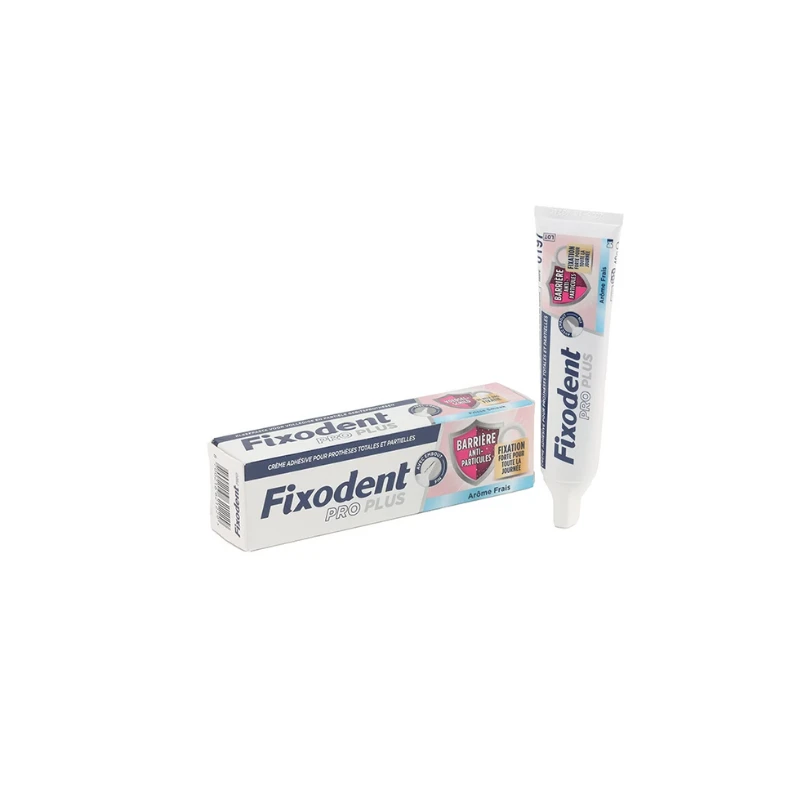 La crème adhésive Fixodent Pro Plus Duo Protection est un produit d’hygiène bucco-dentaire destiné aux personnes porteuses de prothèses dentaires totales ou partielles. Elle permet de fixer la prothèse durablement et garantit une tenue longue durée. Cette crème présente également l’avantage d’avoir une action contre les particules alimentaires. Elle dispose d’un arôme rafraichissant.