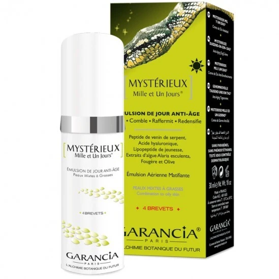 L’Emulsion de Jour Anti-Âge MYSTERIEUX 1001 JOURS de GARANCIA est un soin crème, formulé spécialement pour lutter à la fois contre les rides de toute origine (âge, expression, déshydratation) et la perte de fermeté.