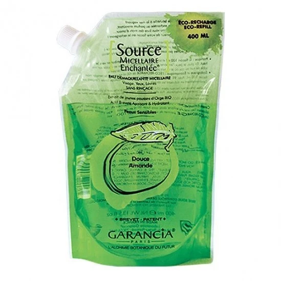 Garancia source micellaire enchantée eau démaquillante micellaire douce amande éco-recharge 400 ml est une recharge pour flacon d’eau micellaire démaquillante au parfum de douce amande. Cette eau micellaire réunit 4 actions en un seul geste : nettoie, hydrate, apaise et illumine.