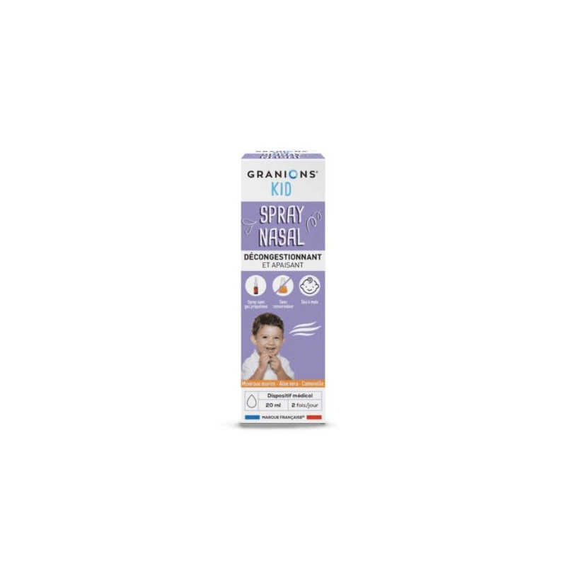 GRANIONS KID SPRAY NASAL, spray nasal isotonique, dégage, hydrate et apaise le nez en cas de rhume chez l’adulte et l’enfant.