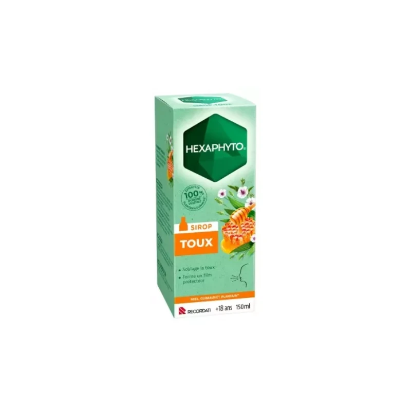 Hexaphyto Sirop Toux 150 ml est un dispositif médical qui favorise la protection et l’hydratation de la muqueuse pharyngée.