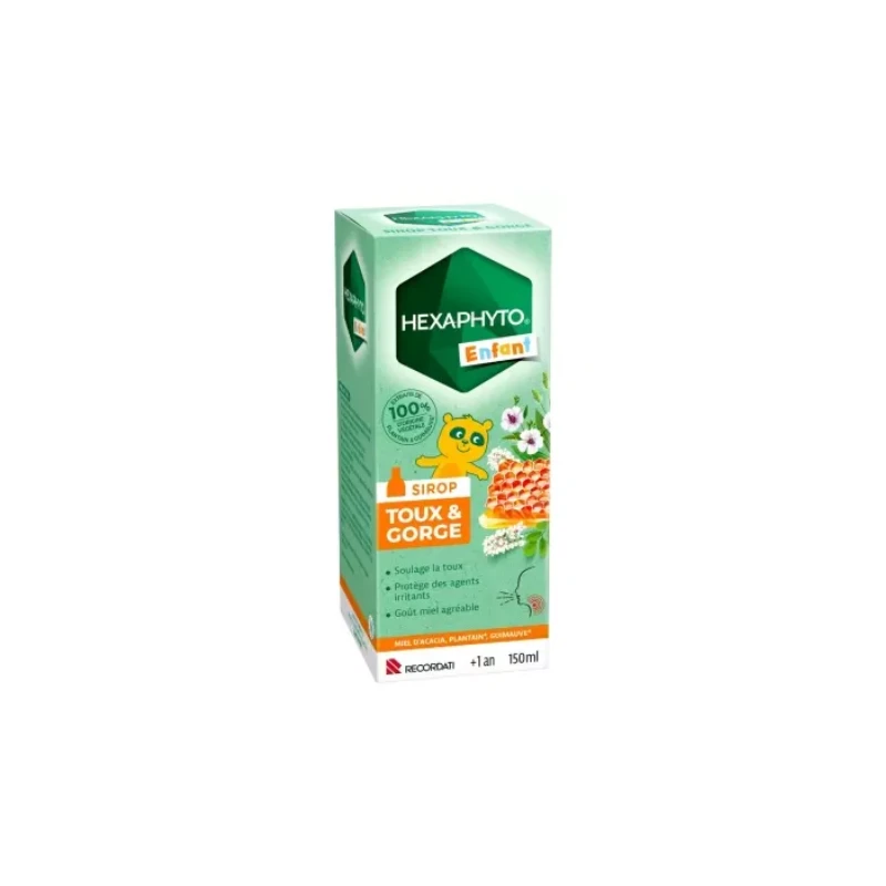 Hexaphyto Sirop Toux & Gorge Enfant 150 ml est un dispositif médical formulé à base de miel d’acacia et d’extraits de plantes qui forment un film protecteur pour soulager la toux tout en protégeant les voies respiratoires supérieures.