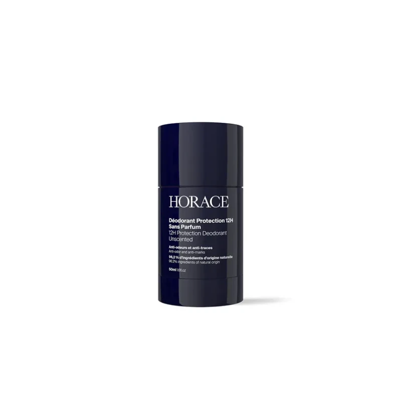 Le Déodorant Sans Parfum Horace protège efficacement des mauvaises odeurs pendant 12 heures.