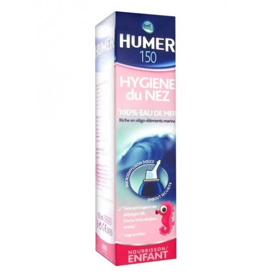 En humidifiant les mucosités sèches et en fluidifiant les sécrétions nasales, Humer Nourrisson Enfant permet un drainage en douceur et facilite le mouchage.