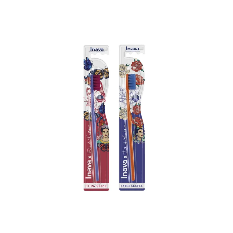 Une brosse à dents extra souple aux couleurs inédites, en référence à l’univers de l’artiste Frida Kahlo. Des brins en nylon de qualité de 15/100°, finement arrondis, pour une hygiène bucco-dentaire quotidienne et un respect optimal des gencives. Avec son manche flexible et son col fin, la brosse à dents Inava x Frida Kahlo Collection 2024 inédite est un indispensable de la salle de bain. Un protège tête permet de la ranger à l’abri et de conserver la forme des brins pour plus d’efficacité. Elle est également assainissable au micro-ondes en plongeant la tête dans l’eau pendant une minute seulement.