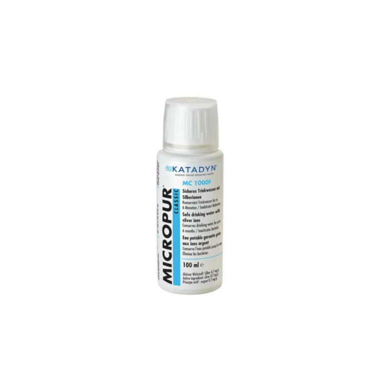 Micropur Classic est un agent de conservateur à base d’ions argent. Il évite la formation et la réapparition des microbes et des bactéries dans l’eau jusqu’à 6 mois. Sans chlore, au goût neutre .