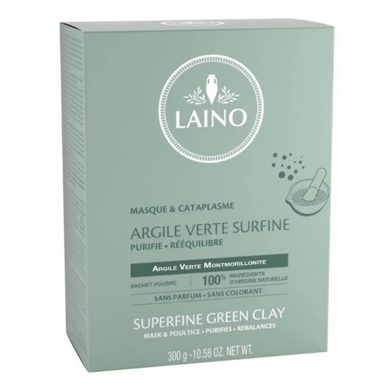 Laino a sélectionné l’Argile Verte Surfine Montmorillonite, reconnue depuis l’Antiquité pour absorber l’excès de sébum, purifier et rééquilibrer l’épiderme par sa richesse en oligo-éléments et minéraux.