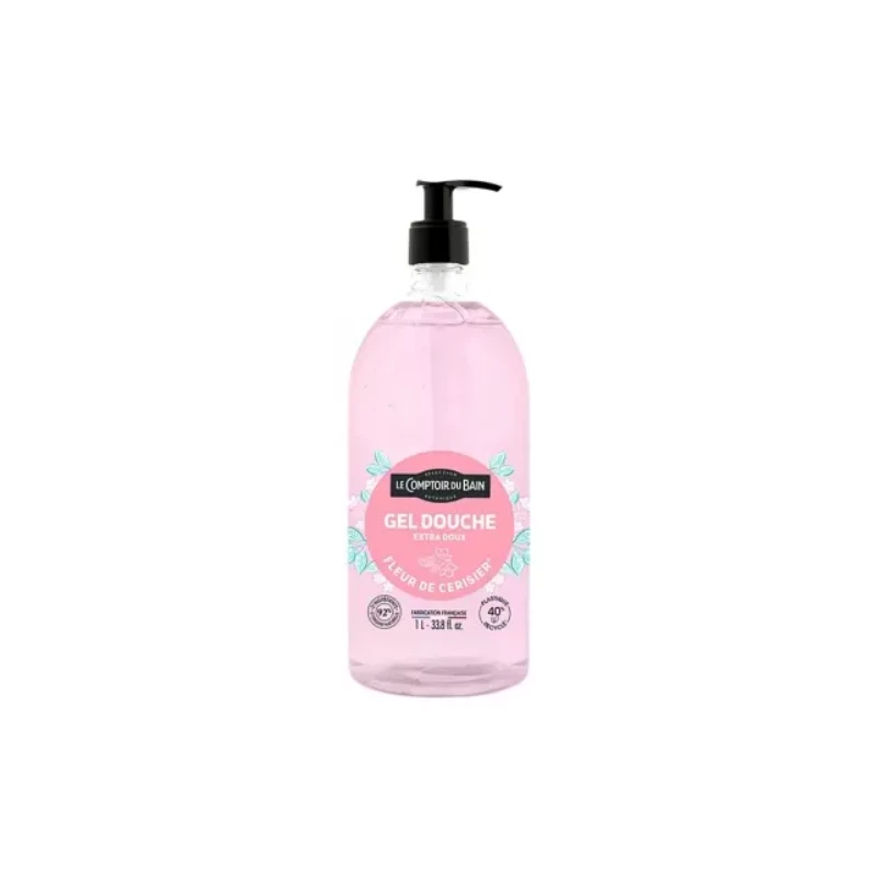 Le Comptoir du Bain Gel Douche Fleur de Cerisier 1 L est un gel douche extra-doux au parfum de fleur de cerisier, adapté aux peaux sensibles.