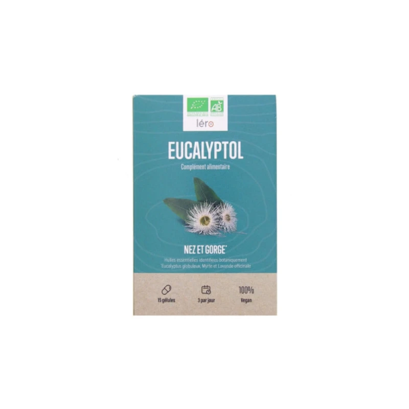 Le complément alimentaire Eucalyptol de Léro favorise le dégagement des voies respiratoires supérieures. Dans sa composition, on retrouve de l’huile essentielle d’eucalyptus, de myrte et de lavande.