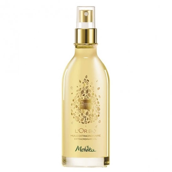 L’or bio huile extraordinaire huile sèche et embellisante. L’or bio de melvita, une huile sèche 100% d’origine naturelle à la texture fluide et légère, délicatement parfumée, qui pénètre rapidement sans laisser de film gras. Sa formule rassemble 5 huiles rares et précieuses issues des quatres coins du monde et sélectionnées pour leur richesse en oméga-3, 6, 9 : – l’huile d’argan du maroc aux propriétés cosmétiques exceptionnelles – l’huile de kendi d’amazonie aux propriétés régénérantes – l’huile de buriti du brésil nourrissante et favorisant l’effet bonne mine – l’huile de pracaxi d’amazonie améliore la brillance et la résistance des cheveux