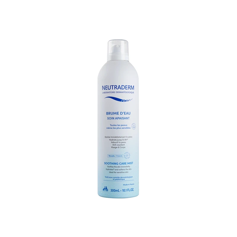 Sans parfum, avec une composition courte d’ingrédients 100% biodégradables et 100% d’origine naturelle, la brume d’eau Neutraderm est adaptée aux peaux les plus fragiles et peut être utilisée par toute la famille, dès la naissance.