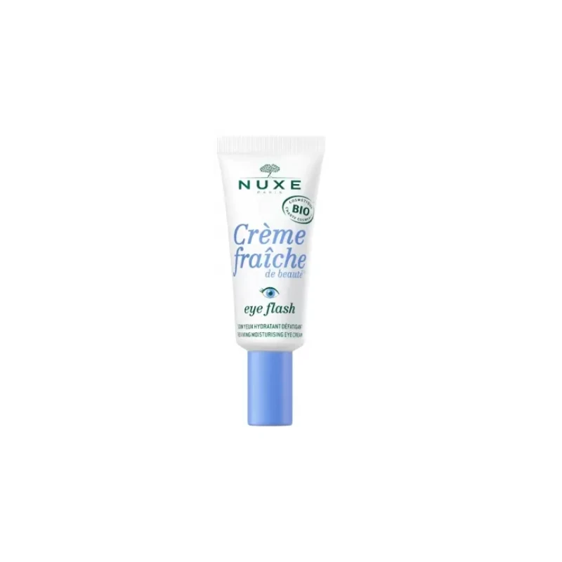 Nuxe Crème Fraîche de Beauté Eye Flash Soin Yeux Bio 15 ml est un soin hydratant effet « flash » pour un contour des yeux instantanément défatigué, comme après une bonne nuit de sommeil. Le regard est illuminé, lissé, les poches et cernes sont atténués. Les signes de fatigue sont réduits et le contour des yeux plus lumineux.