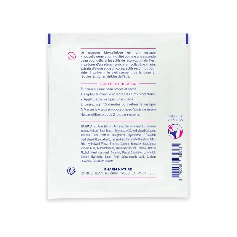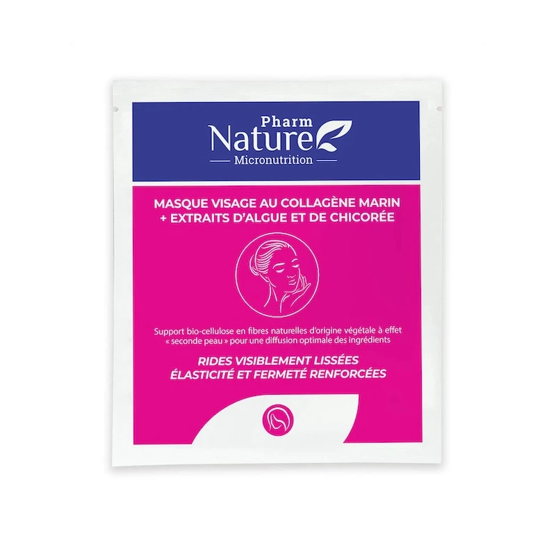 Masque pour le visage au collagène marin, extraits d’algue et chicorée.