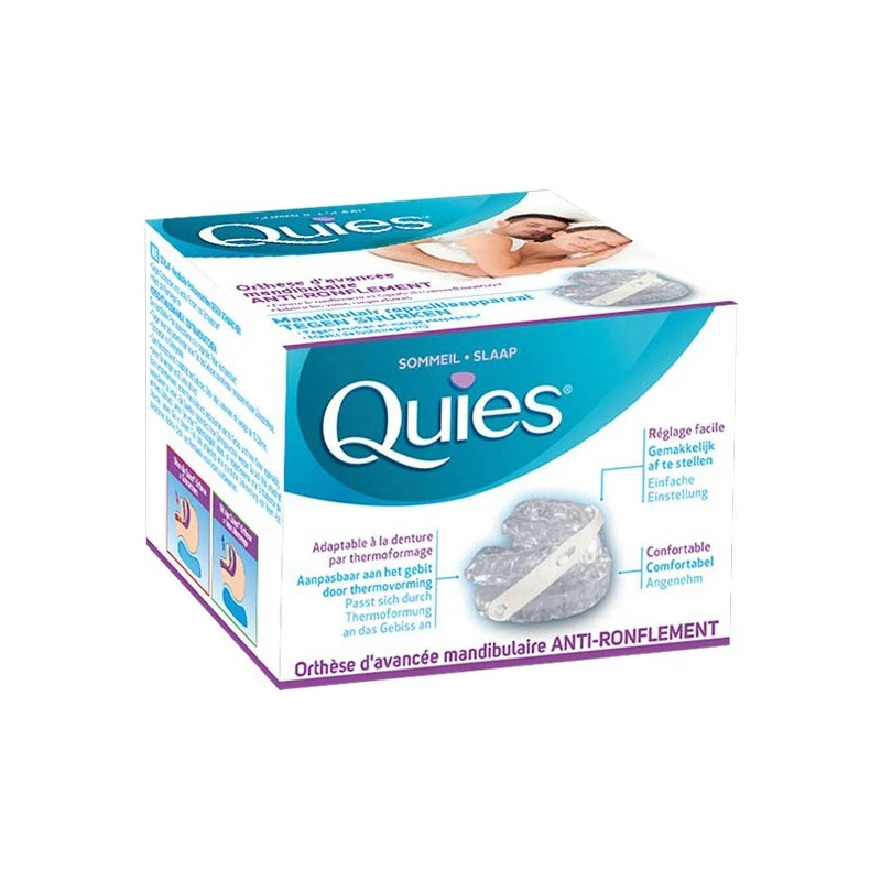 L’orthèse anti-ronflement Quies s’adapte facilement à toutes les morphologies dentaires par thermoformage. L’empreinte dentaire se fait aisément au domicile en 10 mn.