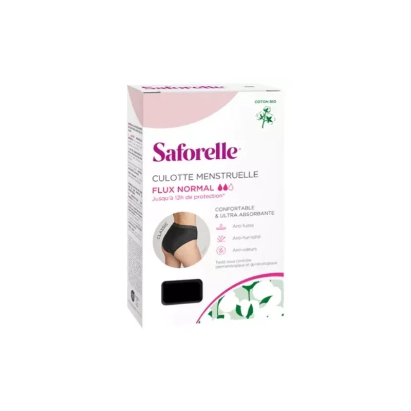 Saforelle Culotte Menstruelle Flux Normal est une culotte lavable pour les périodes menstruelles, spécifiquement conçue pour les flux normaus.