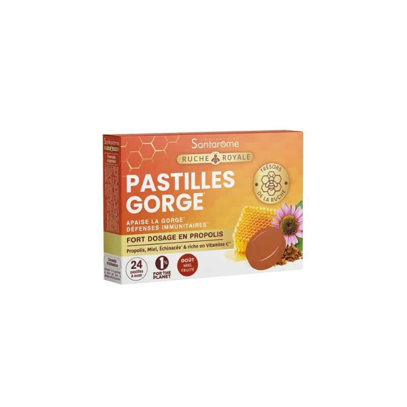 Mal à la gorge ? Irritation ? Nos pastilles Gorge Ruche Royale concentrent deux grands trésors de la ruche, la Propolis et le Miel ; de l’Echinacée et de la Vitamine C. L’échinacée aide à apaiser la gorge en cas de chatouillement et apporte une sensation agréable.