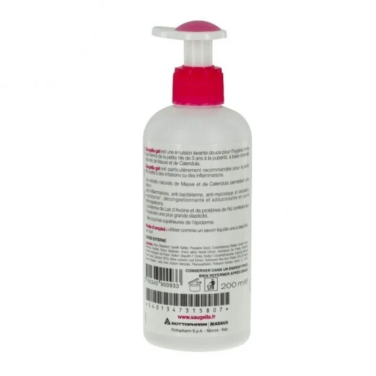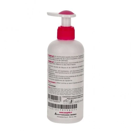 Saugella Girl 200 ml est une émulsion lavante douce pour l’hygiène intime, à base d’extraits naturels de Mauve et de Calendula, particulièrement adaptée pour l’hygiène intime quotidienne de la petite fille de 3 ans à la puberté et en cas d’irritation ou d’inflammation.