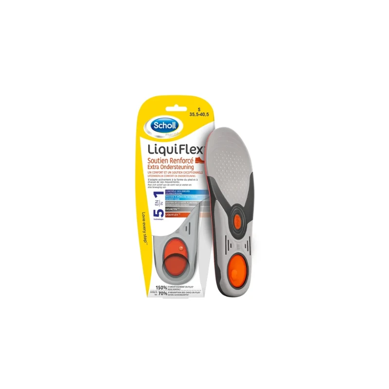 Les Semelles Soutien Renforcé Liquiflex de SCHOLL garantissent soutien et confort de longue durée.