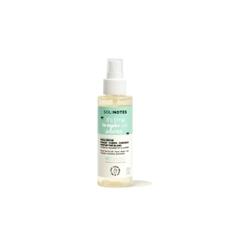 Avec l‘huile sèche Thé Blanc, prolongez l’expérience parfum Solinotes avec un nouveau rituel parfumé.