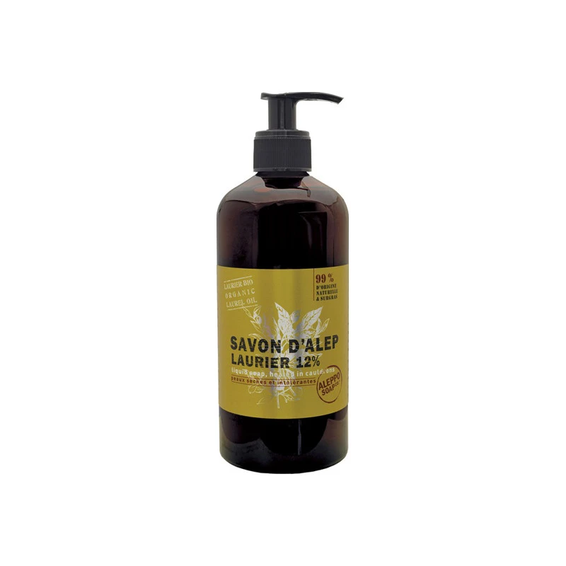 Ce savon liquide artisanal, fidèle au procédé aleppin, est produit par saponification au chaudron d’huile d’olive, enrichie de 12 % d’huile de laurier noble.