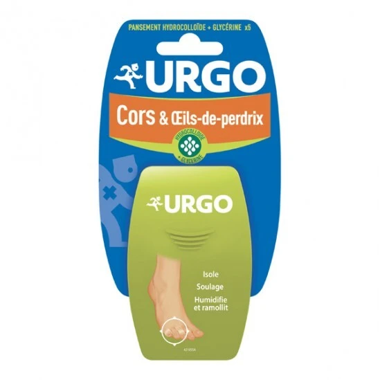 URGO Traitement Cors & Œils-de-perdrix est un pansement hydrocolloïde enrichi en glycérine indiqué dans le traitement local des callosités naissantes telles que les cors et œils-de-perdrix.