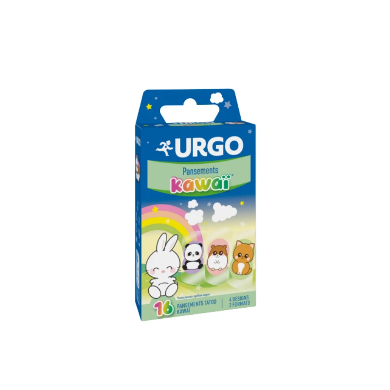 URGO Pansements KAWAÏ protège les petites blessures de votre enfant et le réconforte grâce à ses personnages mignons. Le panda, le hamster, le chat ou encore le lapin sont imprimés avec un effet « tatouage », et égayent les journées de vos petits aventuriers. Les pansements URGO KAWAÏ sont également efficaces : ils résistent à l’eau et absorbent les exsudats. Les 2 tailles de pansements présentes dans la boîte s’adaptent à toutes les localisations de plaies.